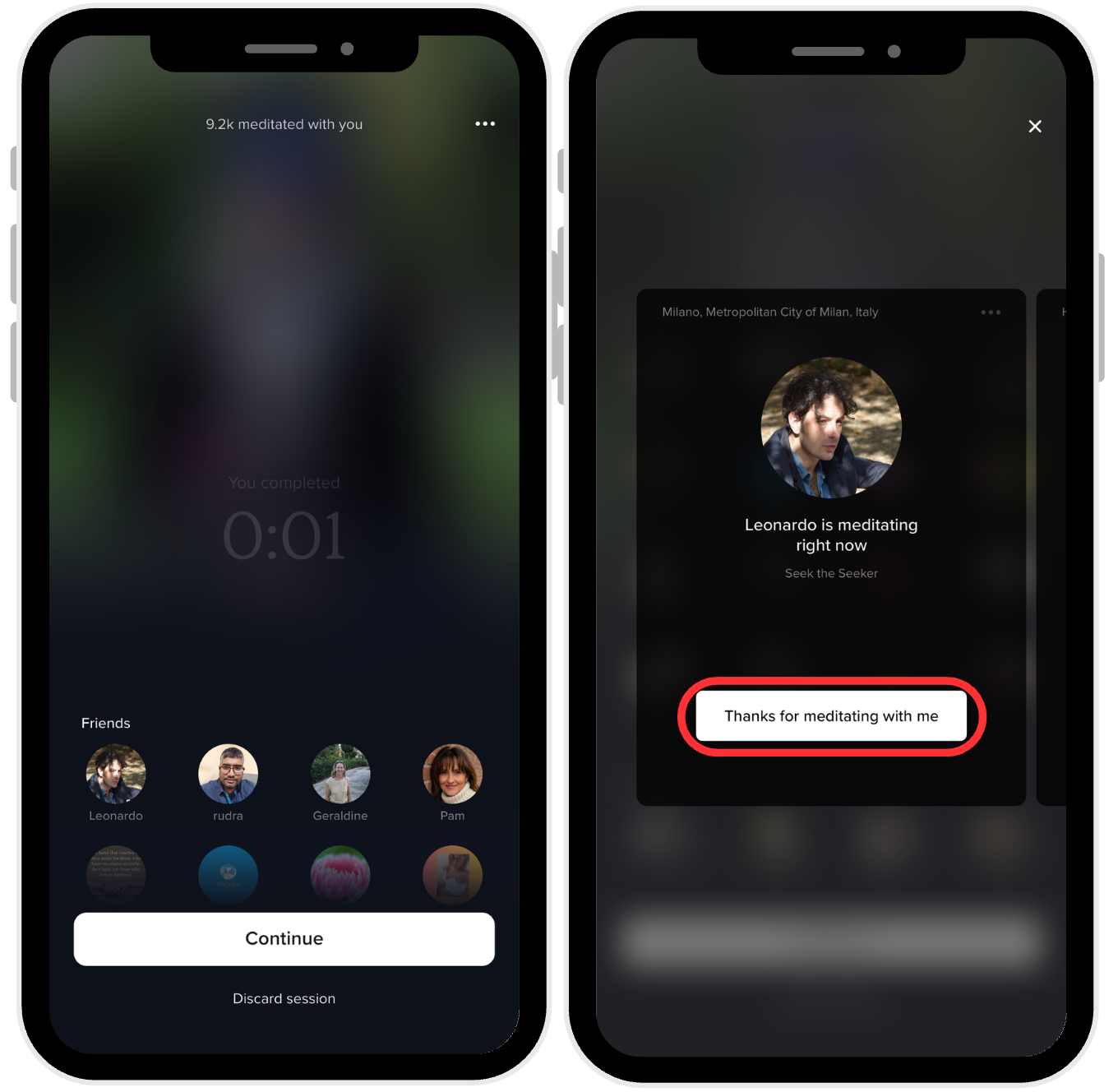 - You'll see the list of community members who meditated with you.