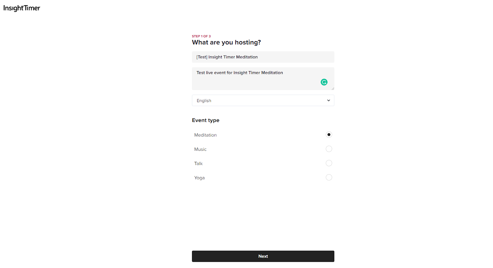 You'll have two main options: applying for Live Meditations or applying for Live Yoga events. Live Meditations include guided meditations, music sessions, talks, wellness seminars, and other spoken word content that helps people with meditation, mindfulness, relaxation, sleep, and overall emotional health. Live Yoga includes all types of yoga classes and yoga nidra sessions.